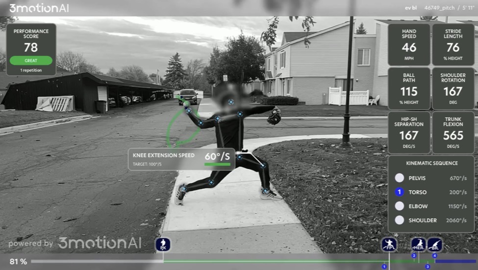 We utilize 3MotionAI to elevate our player development. The system tracks every movement, analyzing the mechanic and pointing out strengths and areas of improvement. This tech driven approach takes all the guesswork out of the equation and allows the players to refine there pitching motion which leads to increased velocity and reduced injury risk.